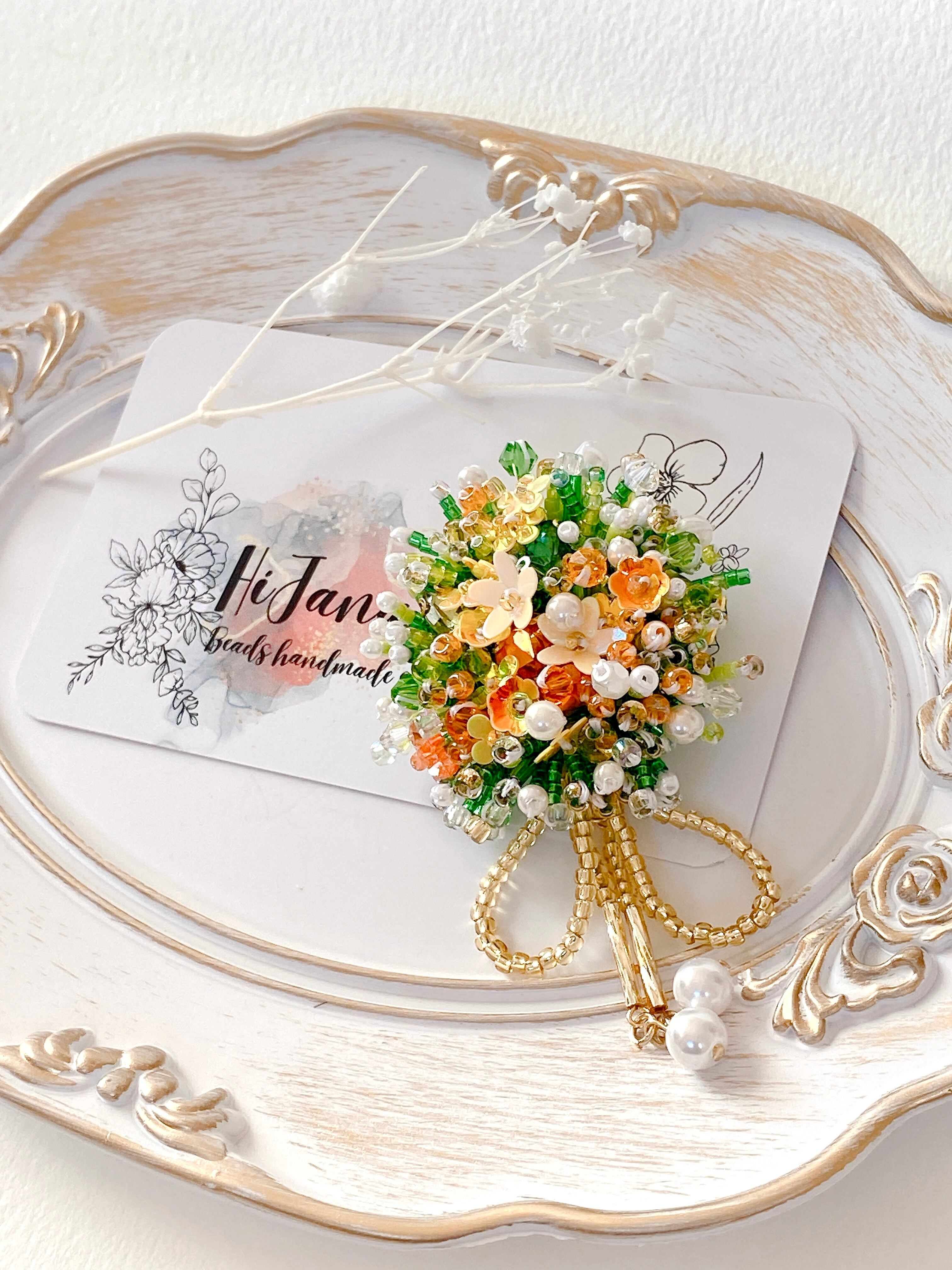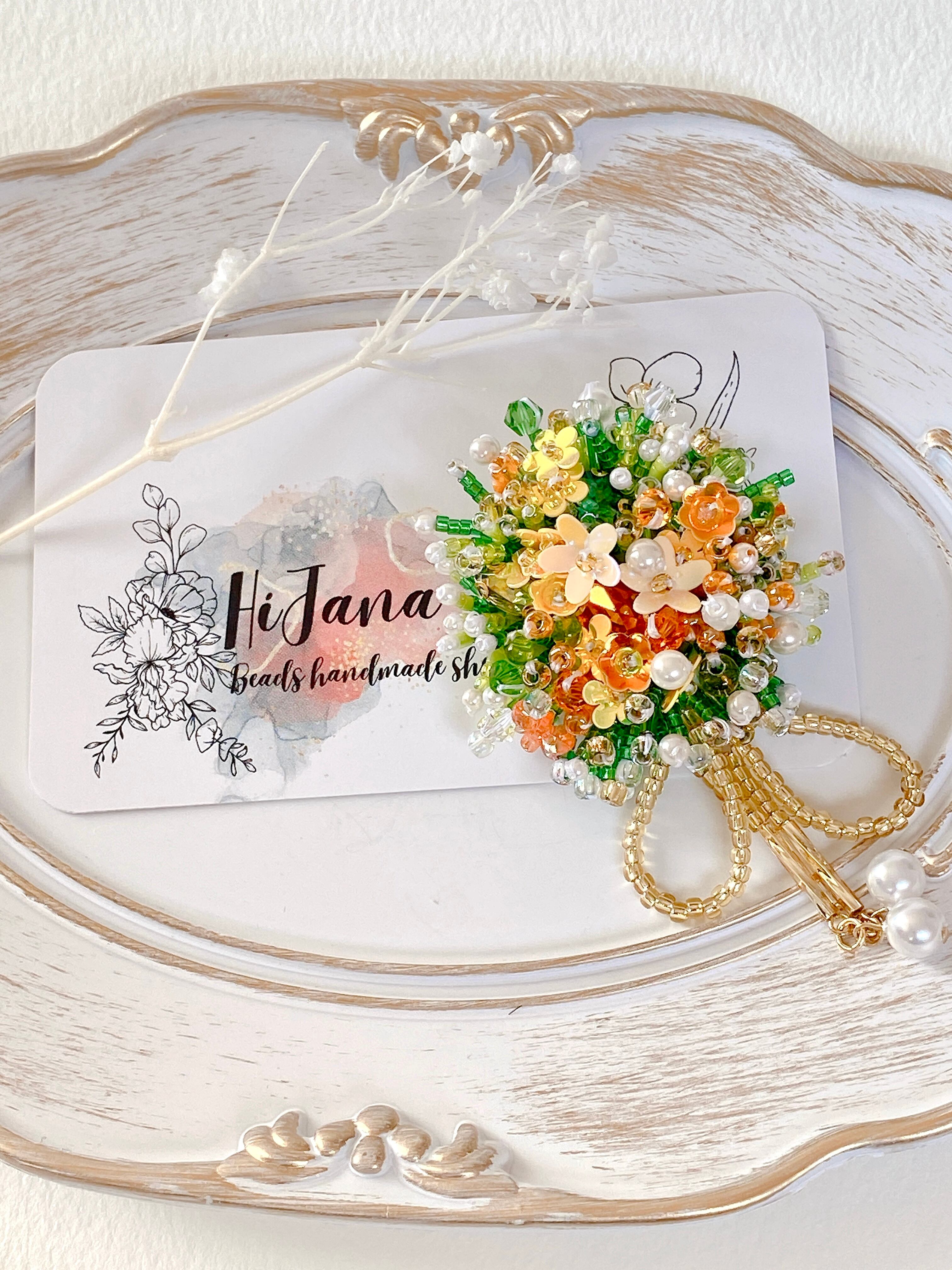 同じデザインでも、使用するビーズやパーツが異なるため、すべて一点ものです。