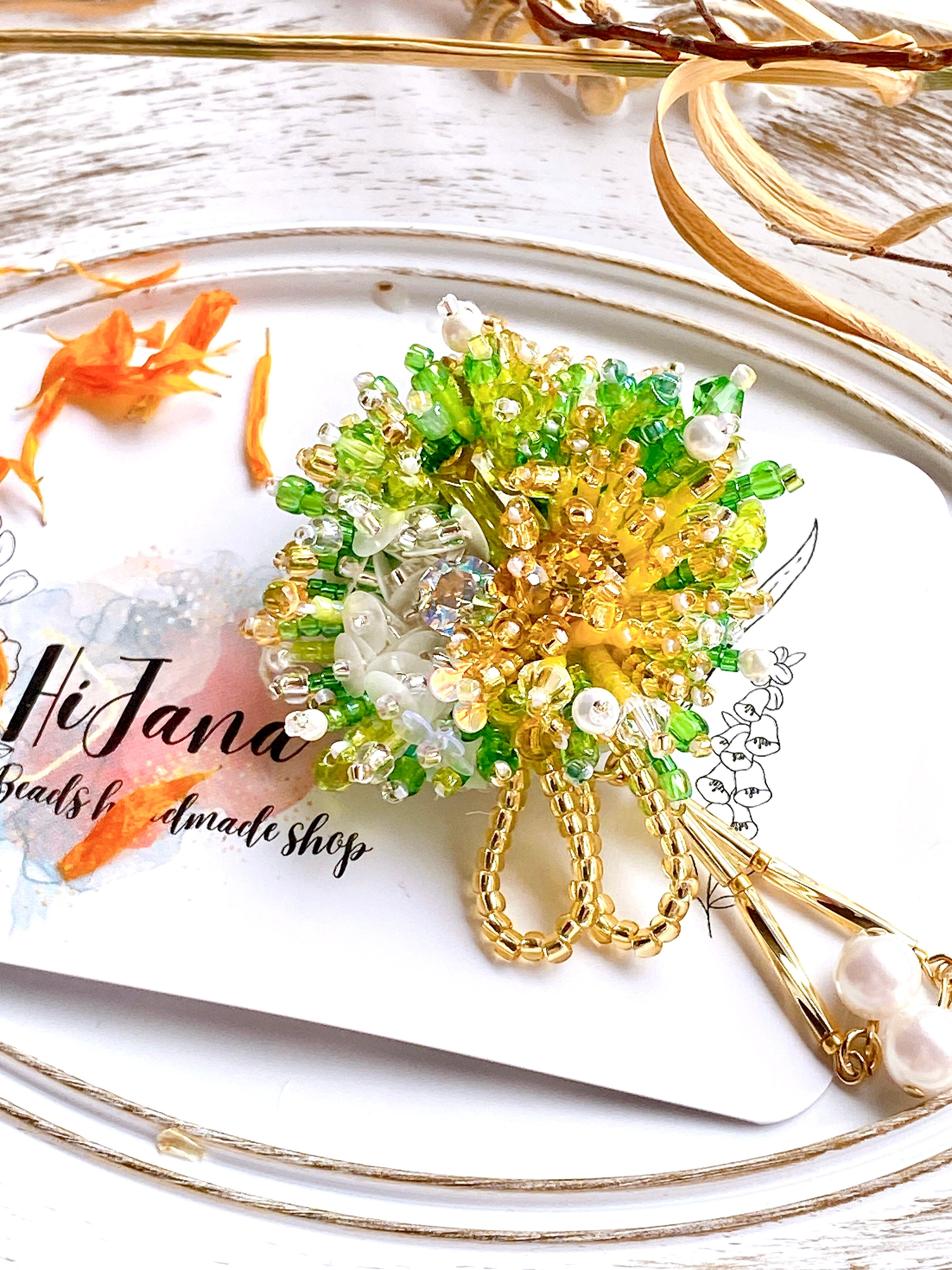 ビーズ刺繍ミモザデイジー花束ブローチ