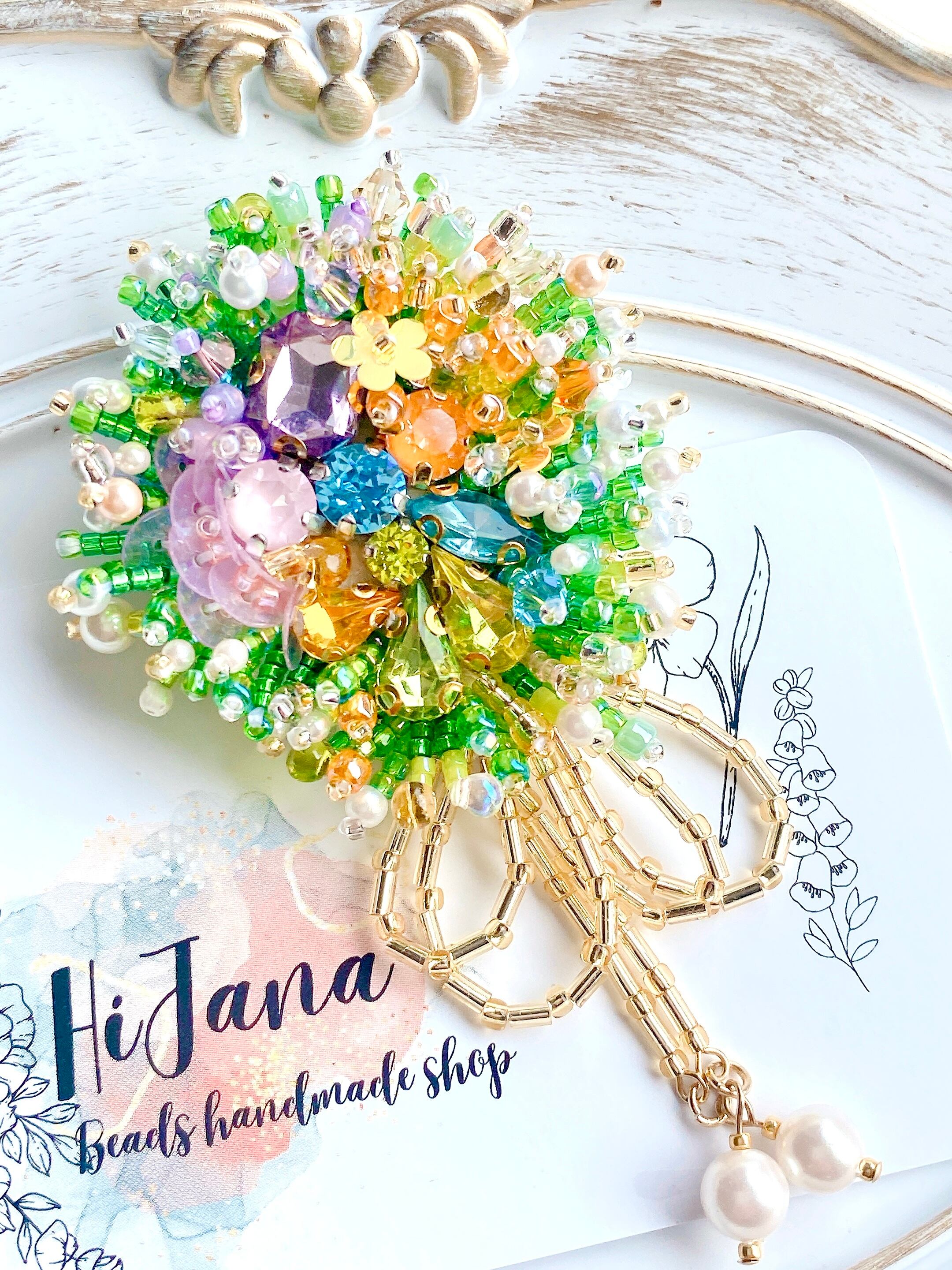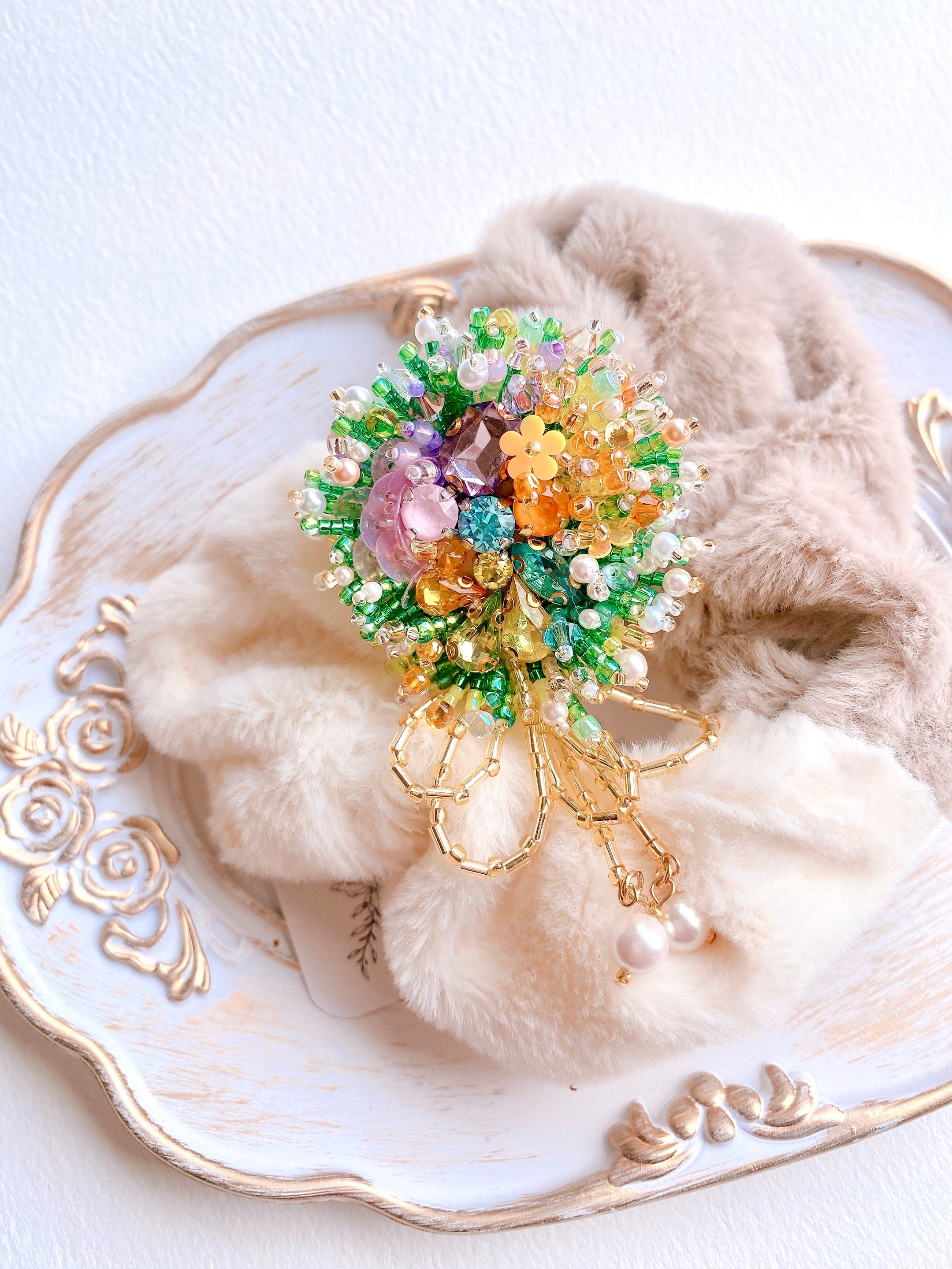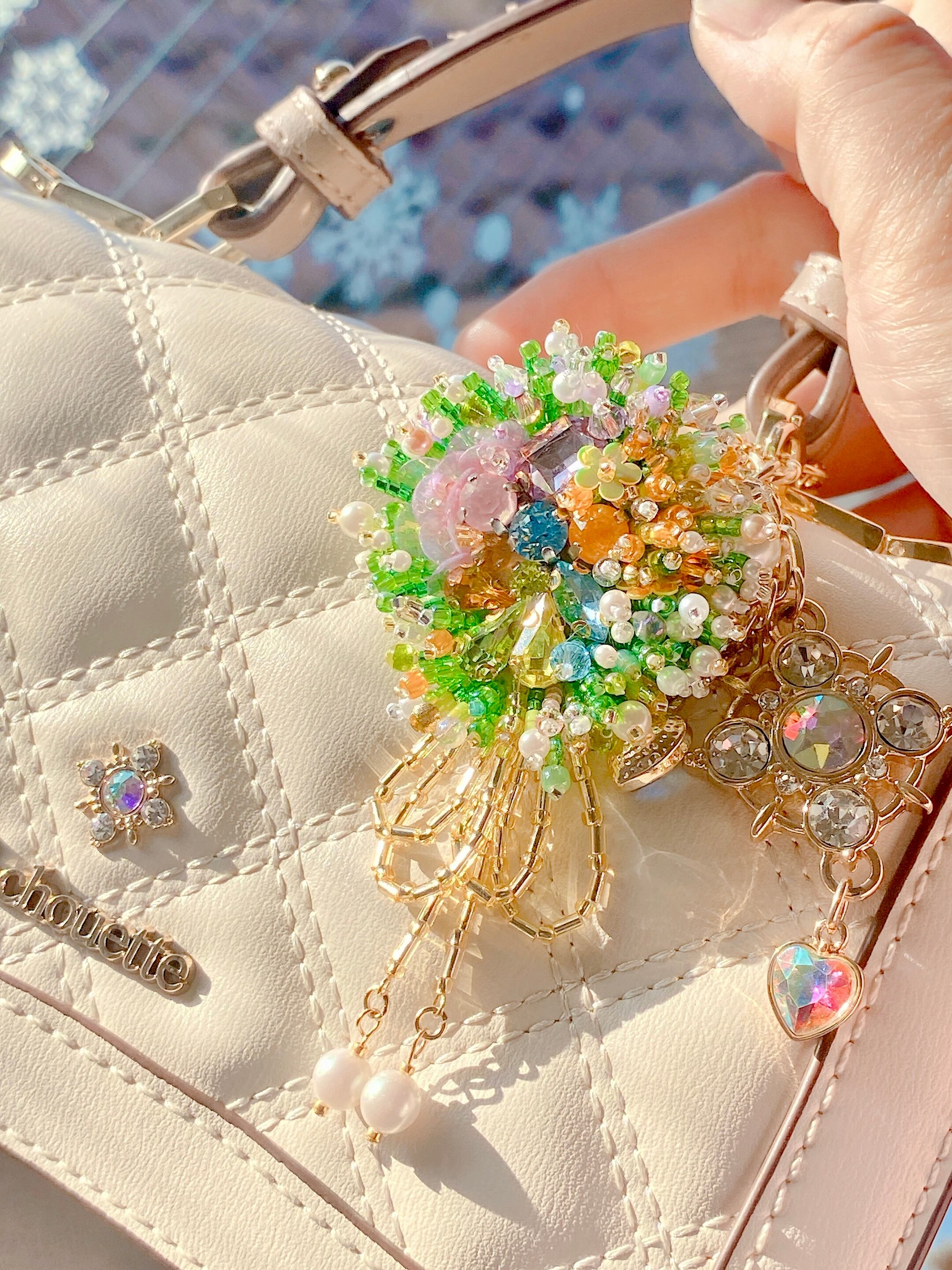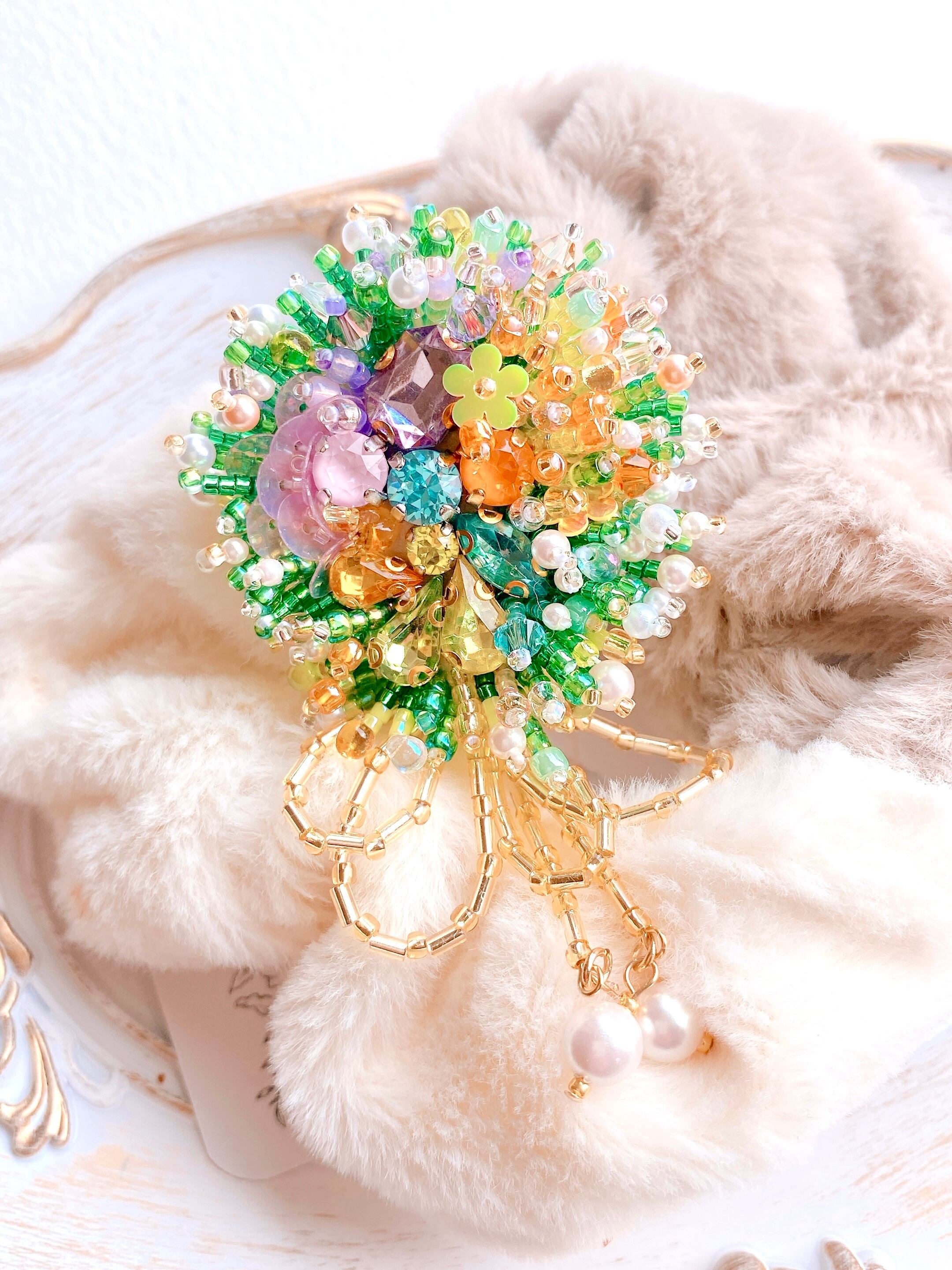 ビーズ刺繍ミニガーデンブローチ/バックチャーム