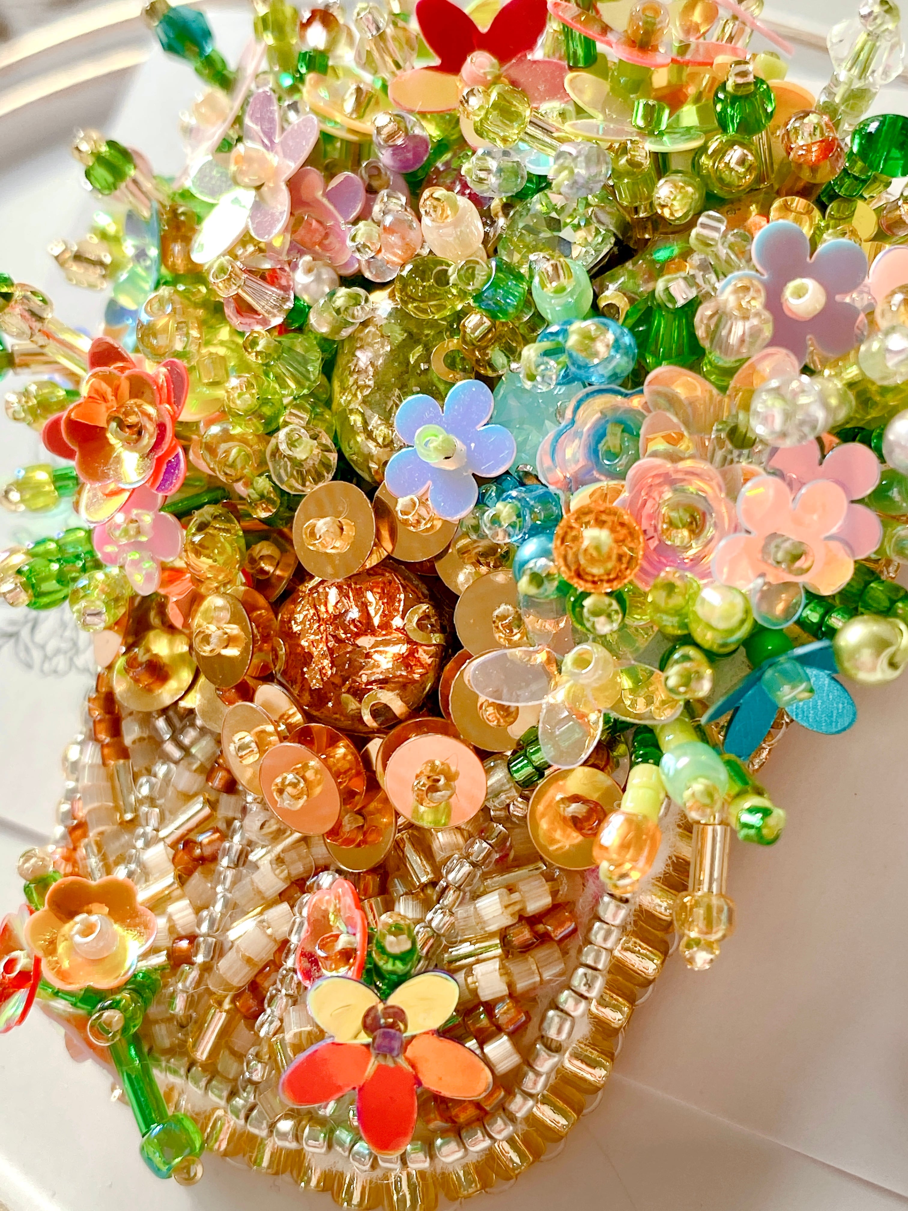ビーズ刺繍ver4コットンキャンディ花バスケットブローチ