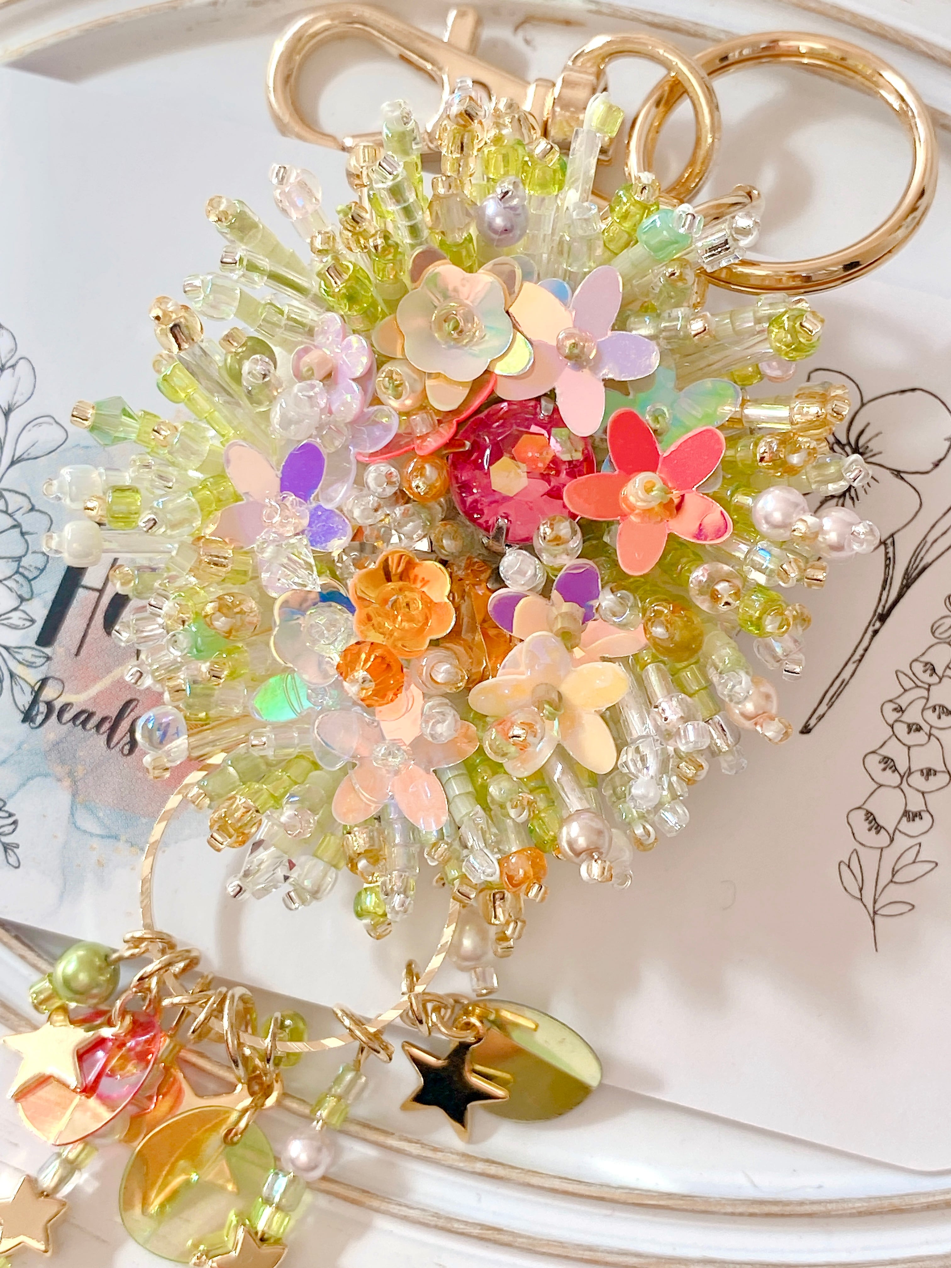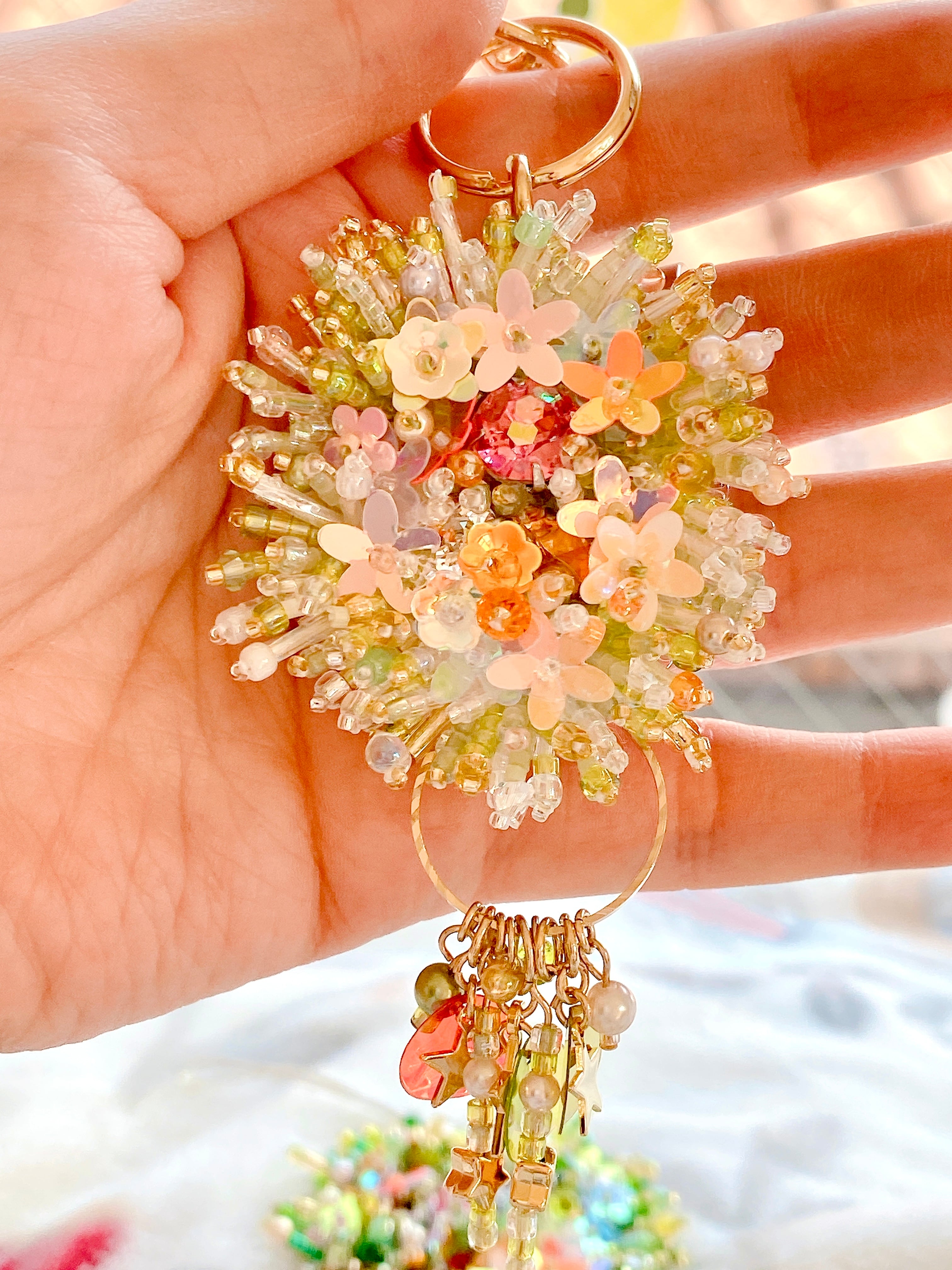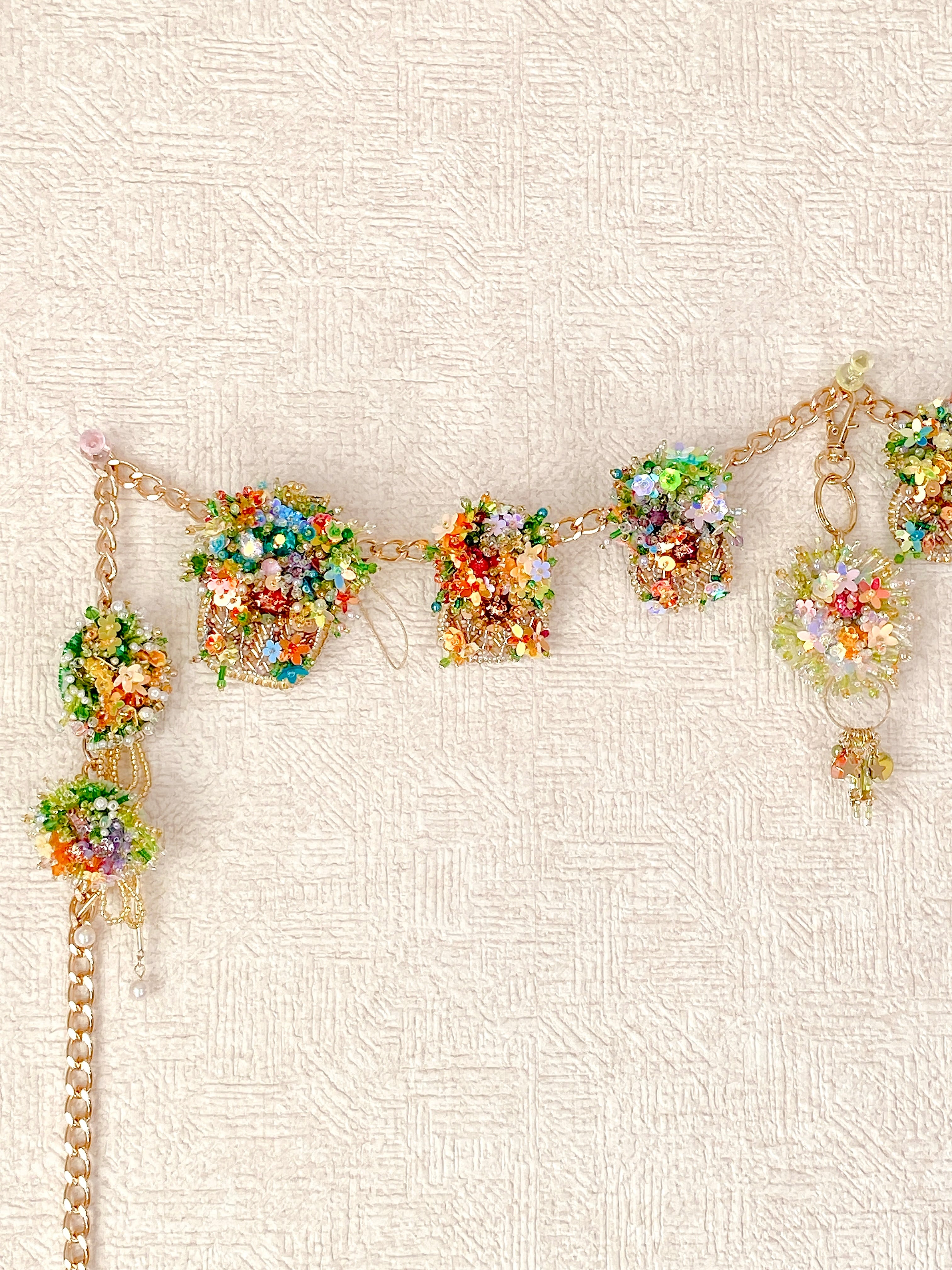 ふんわり優しいパステルカラーに、光を受けてきらめくビーズやスパンコール。