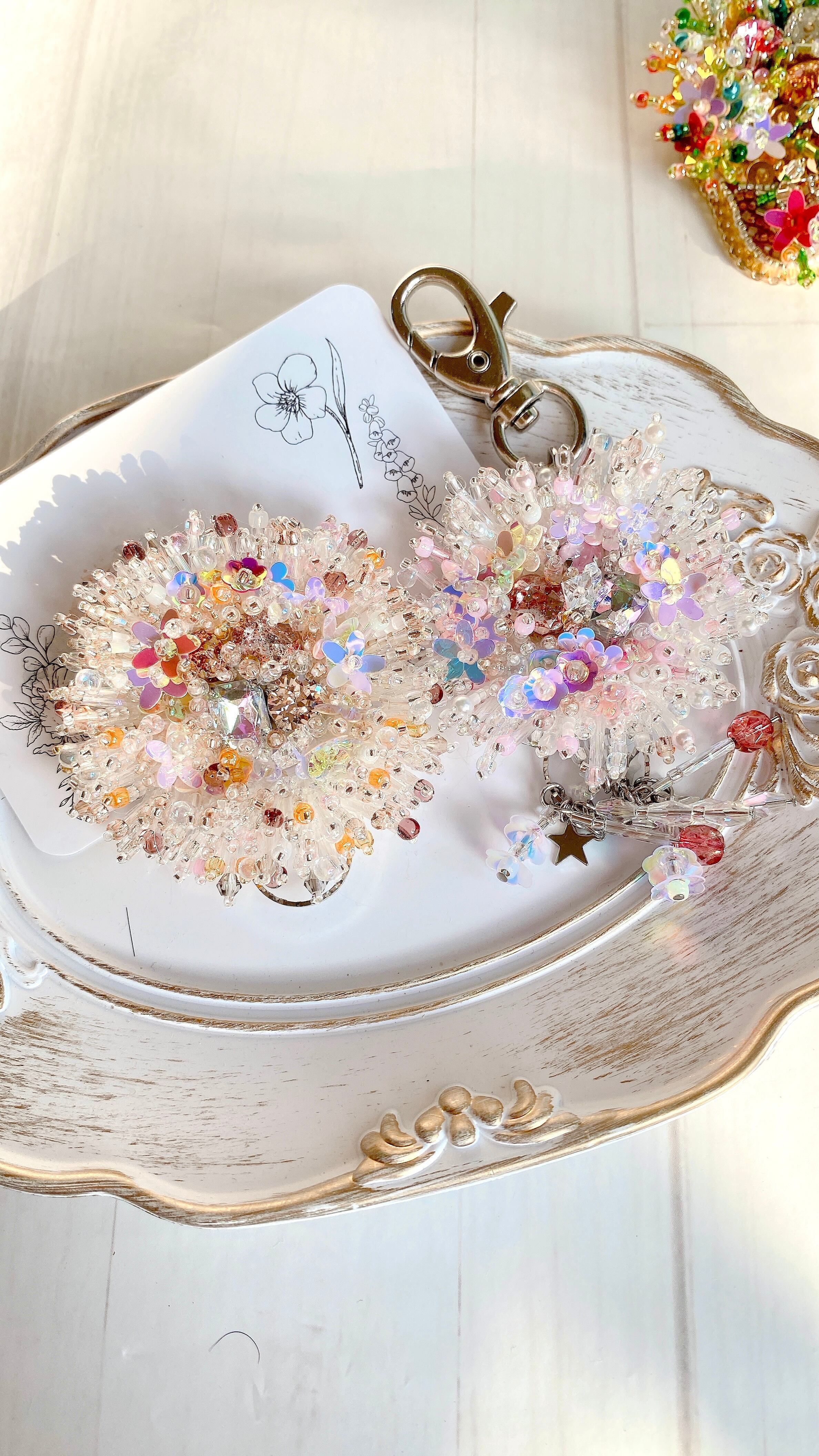 ふんわり優しいパステルカラーに、繊細なビーズとスパンコールをたっぷり詰め込みました。