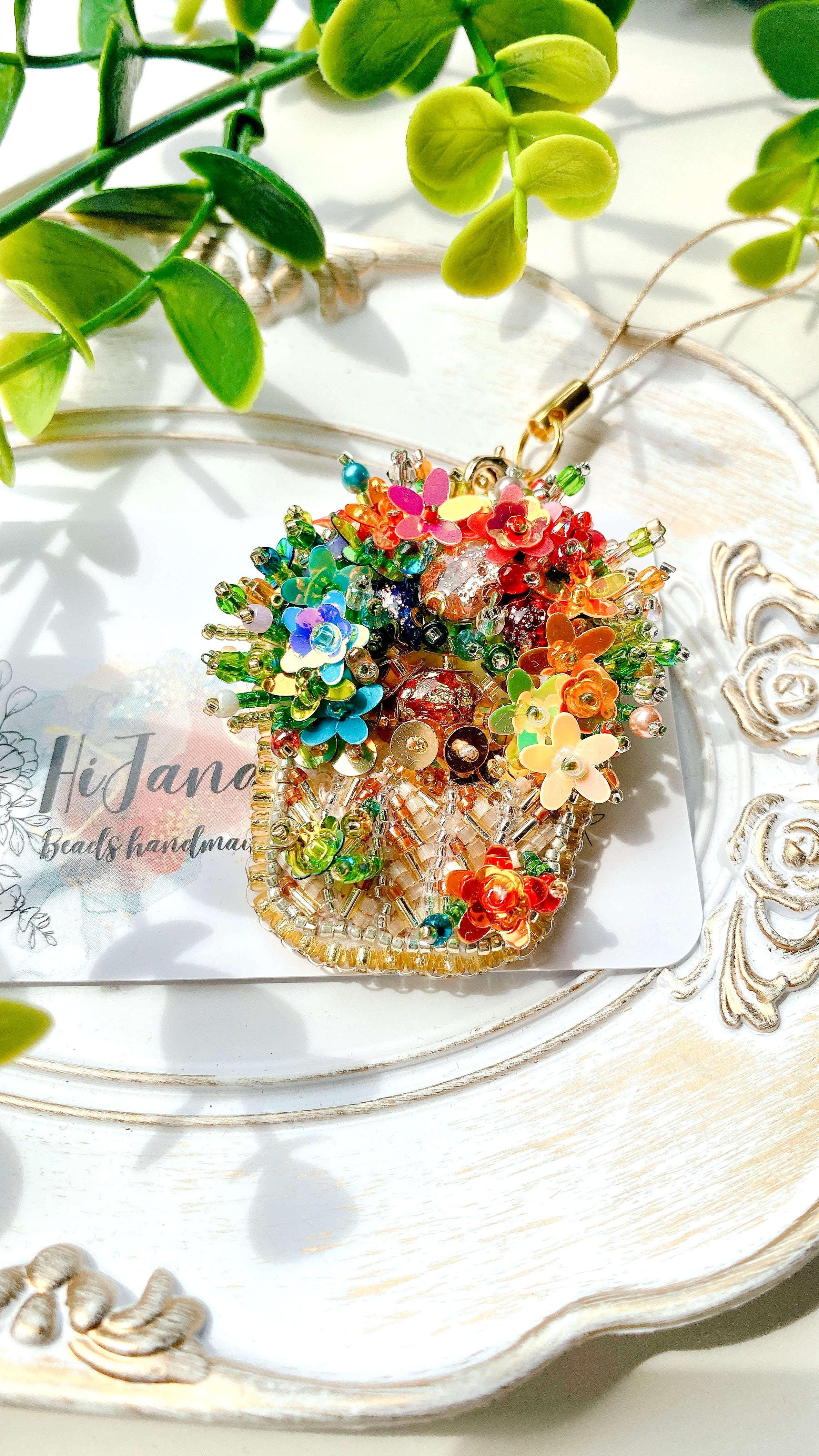 色とりどりのビーズやスパンコールが、まるで光を集めたようにきらめきます。