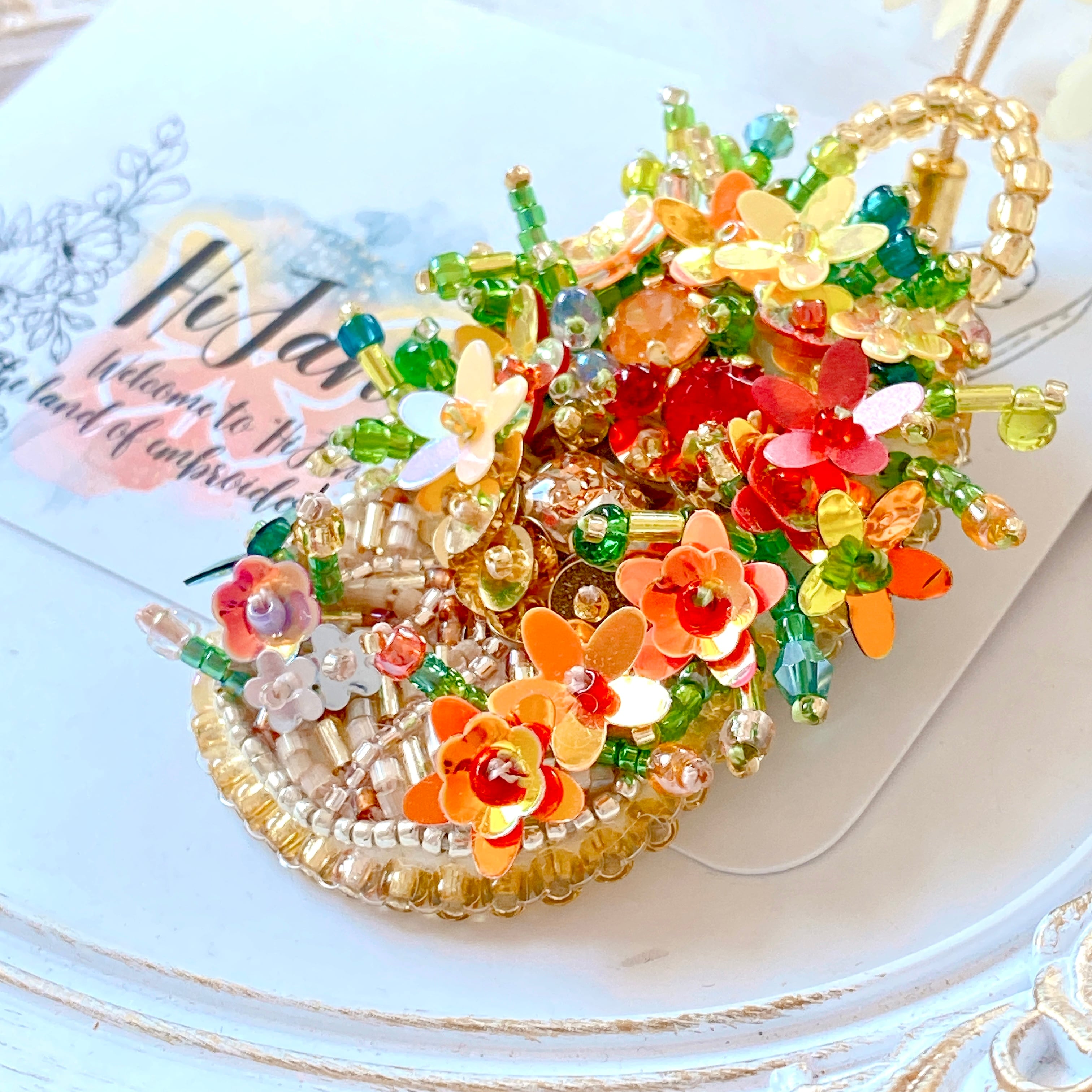 ビーズとスパンコールをたっぷり使用し、丁寧に手刺繍しました。