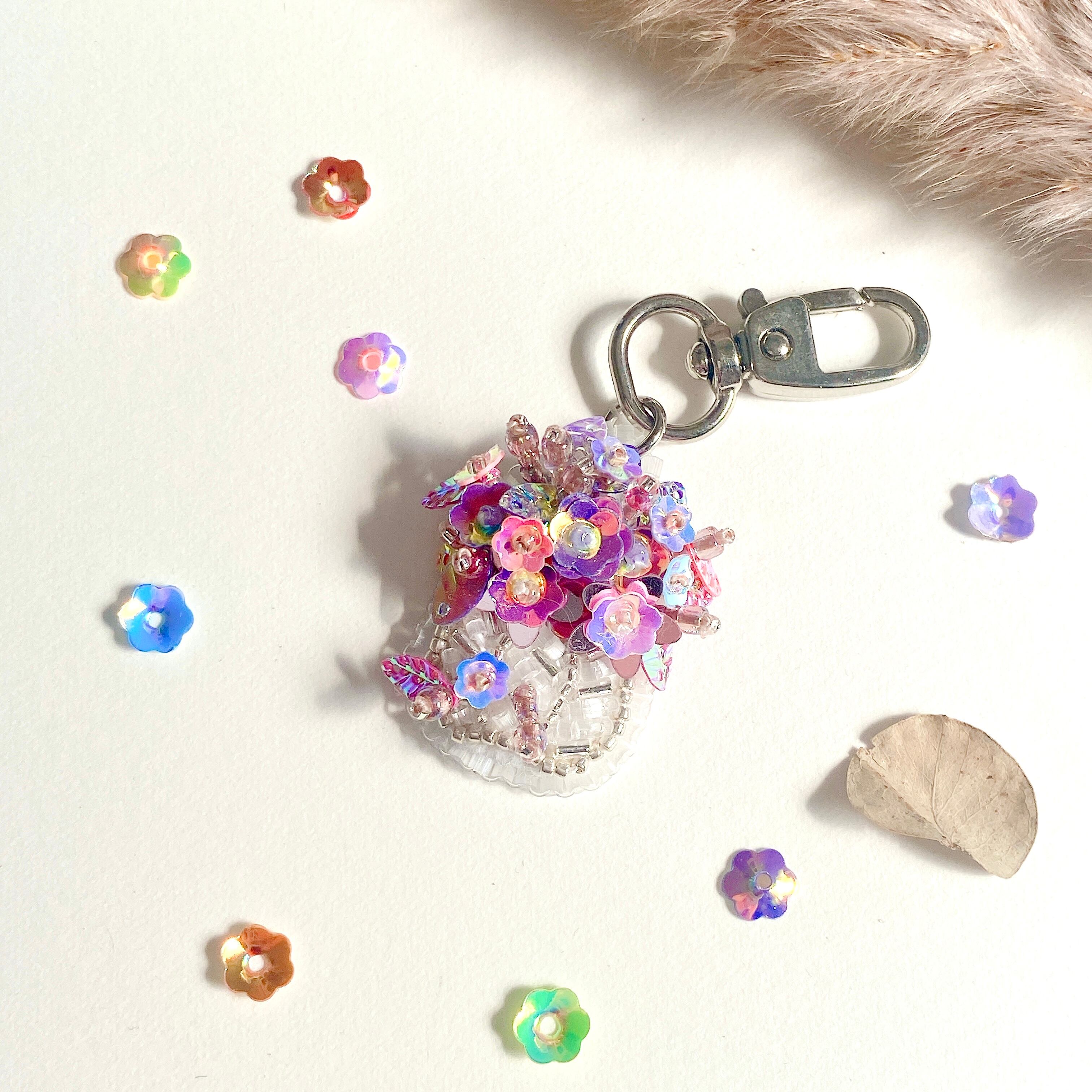 ビーズ刺繍で仕立てたミニ鉢花。