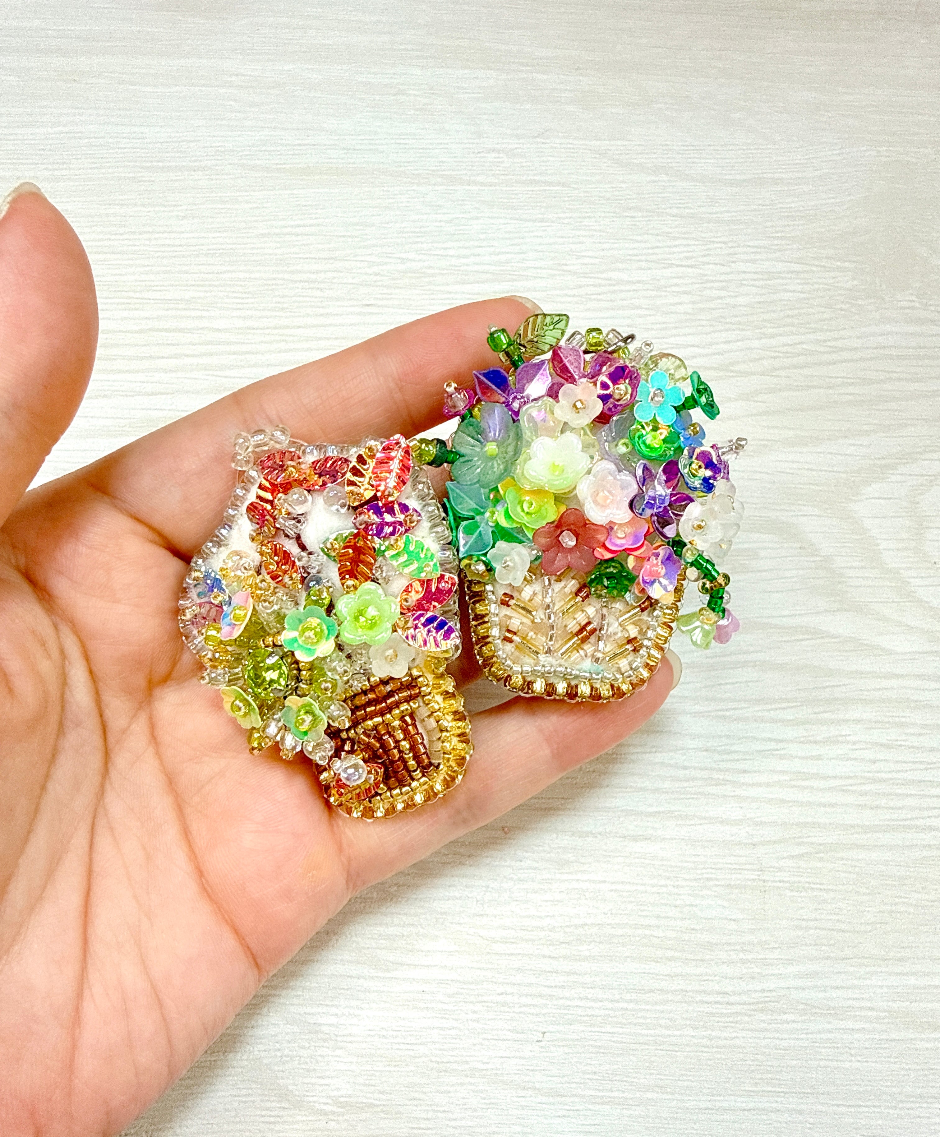 ・透明感のあるビーズとスパンコールを用いた立体刺繍