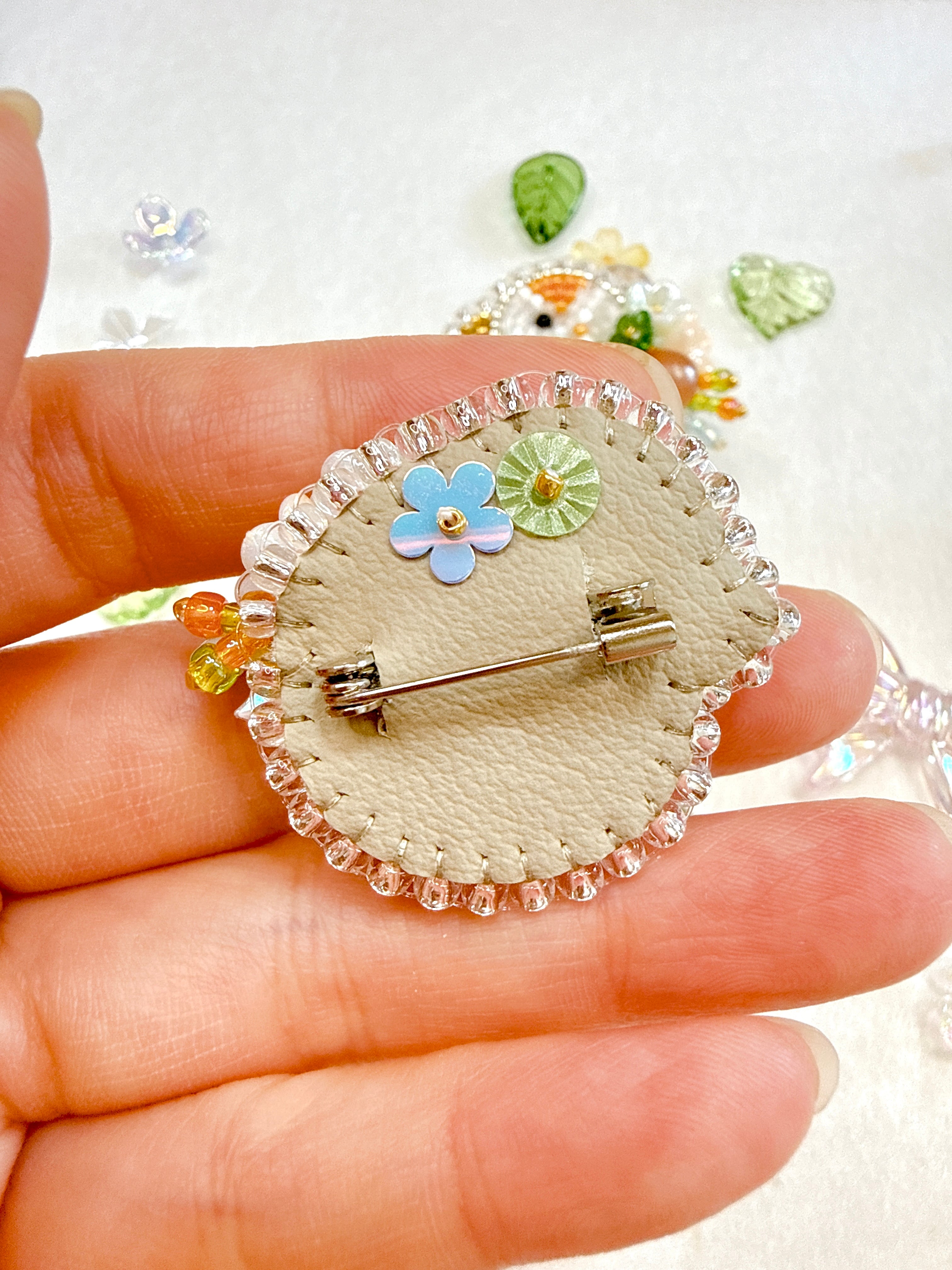 小さな春の庭のような世界を立体刺繍で表現しました。