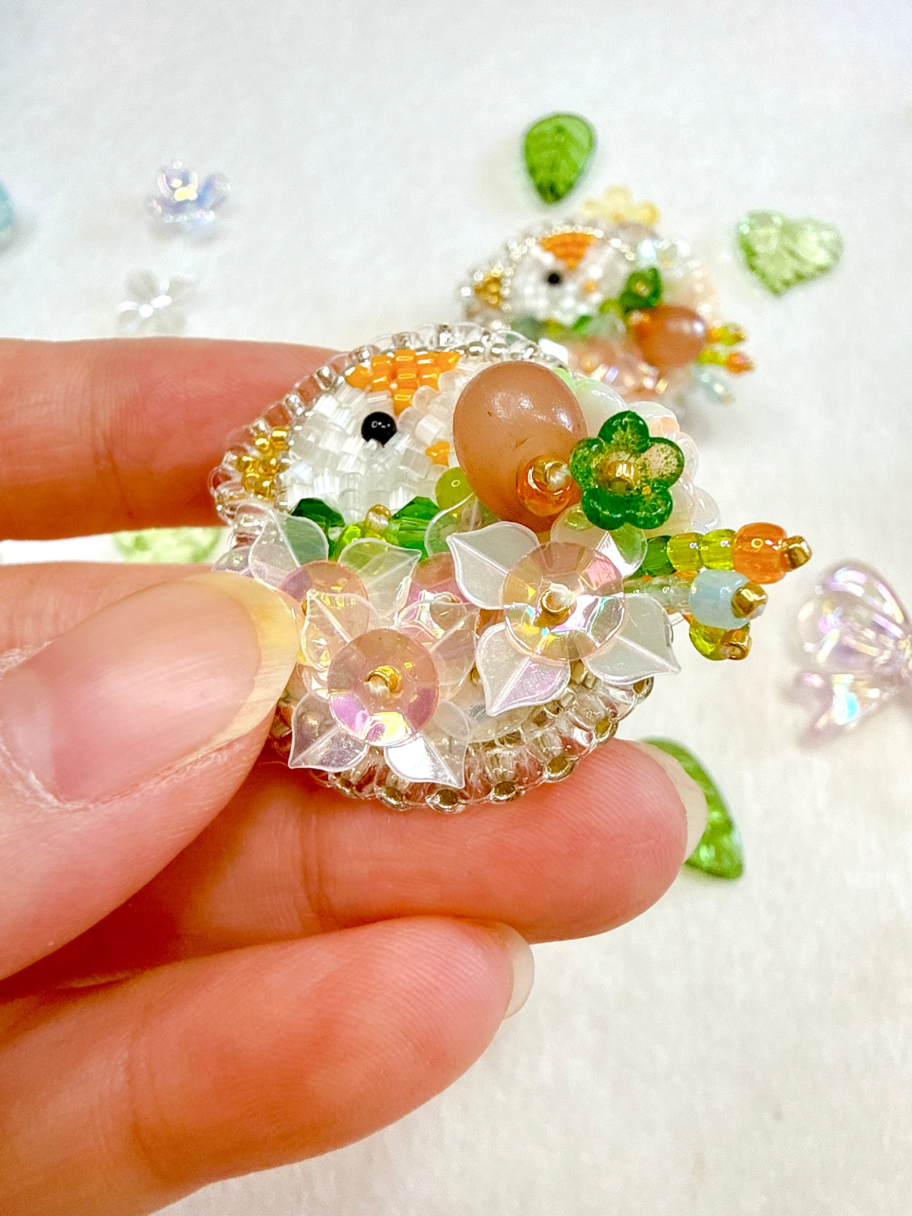 透明感のあるビーズやスパンコールを重ね、