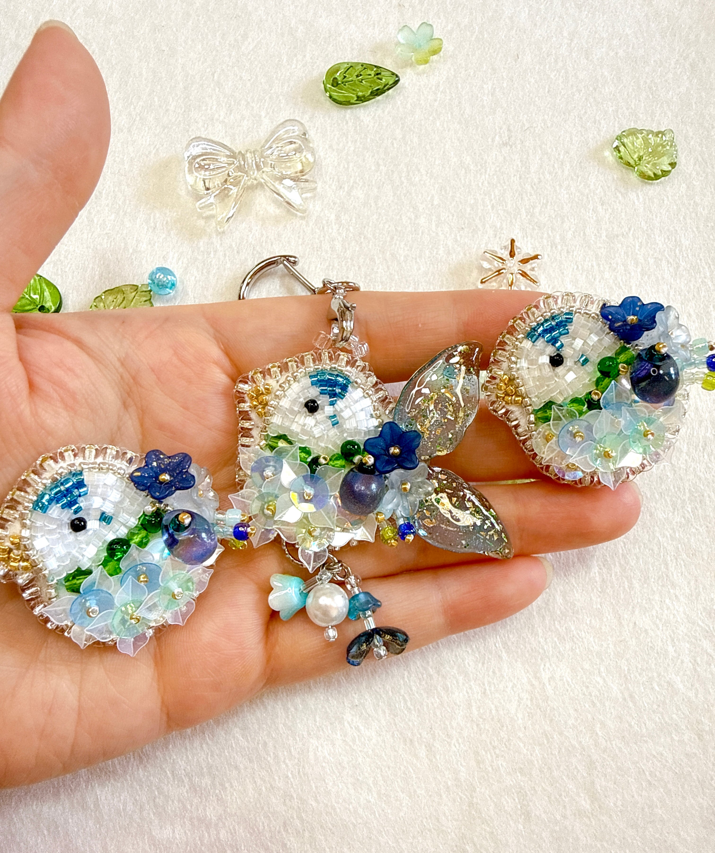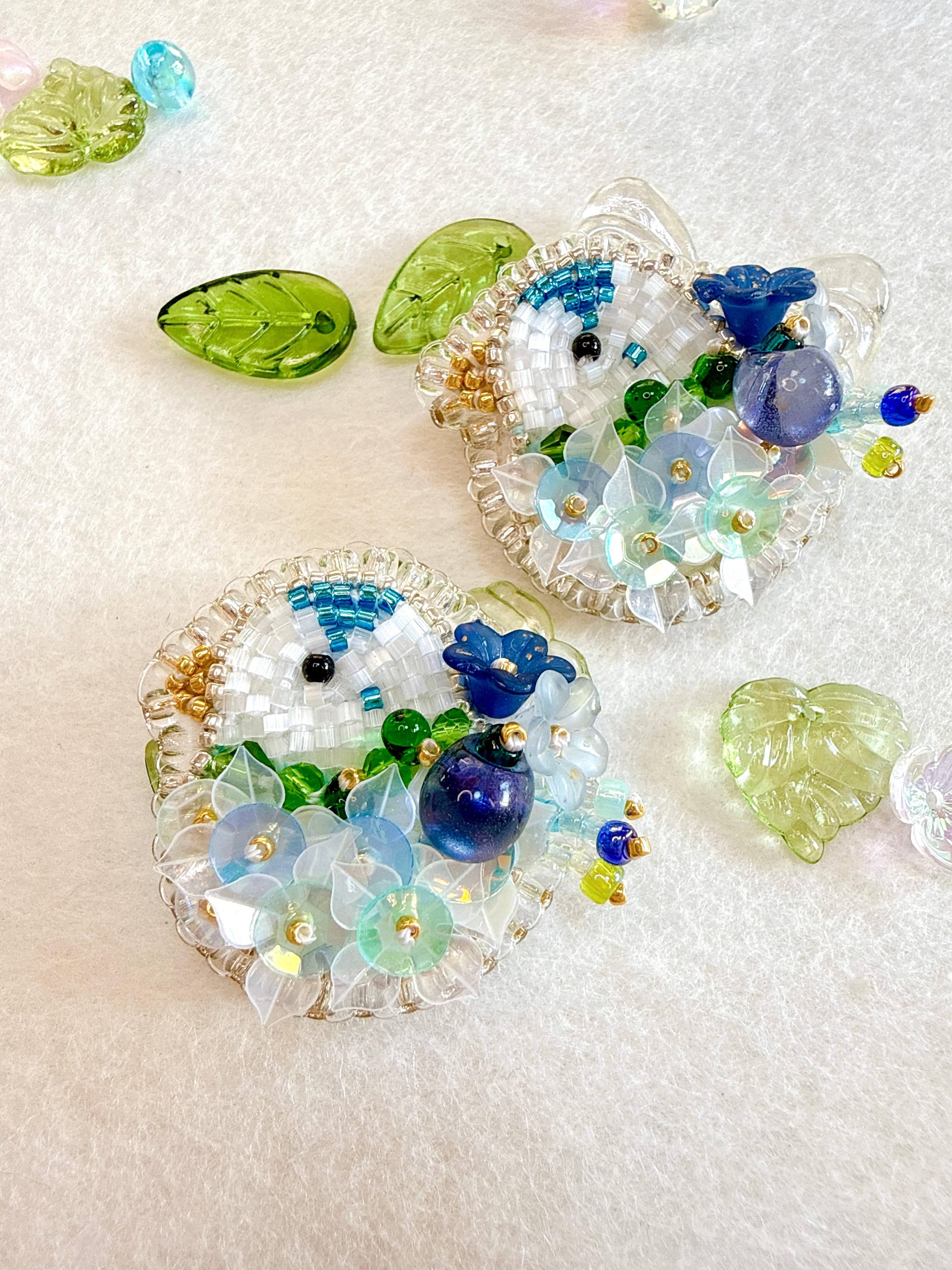 透明感のあるビーズやスパンコールを重ね、